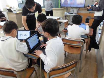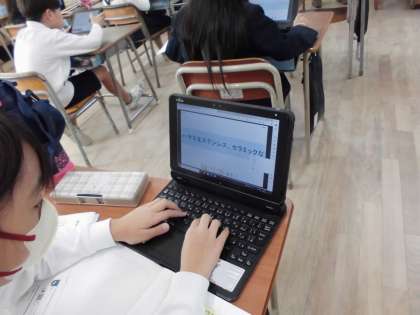 3年生は国語で「道具のひみつを使えよう」の学習をしています。自由進度学習を取り入れ、それぞれの速さに応じて、インターネットを使って調べている児童や、調べたことをまとめている児童など、思い思いの活動をがんばっています。
