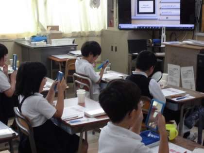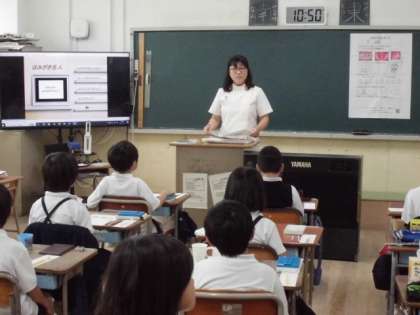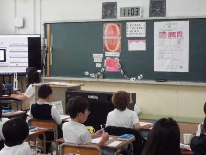 2年生は歯みがき指導を実施しました。正しい歯みがきのしかたを指導していただいた子どもたちは、鏡でしっかりみがけているか、チェックできました。