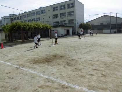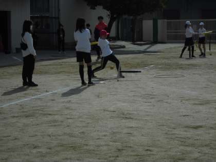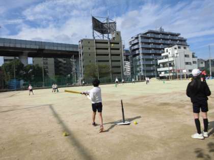 5年生は東住吉支援学校と居住地交流をしました。体育でTボールを一緒に行いました。バッティングしたり、とんできたボールを受けたり、楽しく活動できました。