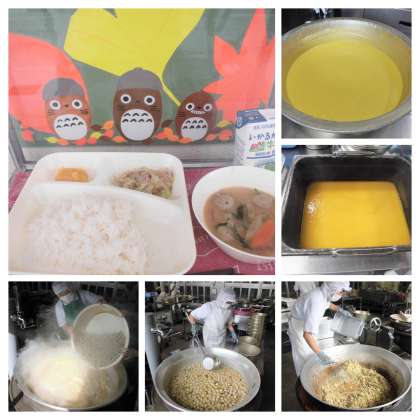 献立は、豚肉と野菜のいためもの・いわしのつみれ汁・かぼちゃういろう・ごはん・牛乳でした。
