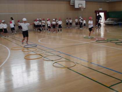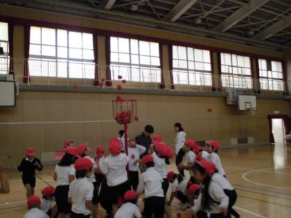 2年生は東住吉支援学校との居住地交流を行いました。始めに運動会のダンスを見せました。続いて、一緒に玉入れを楽しみました。白組が100以上玉を入れることができました。輪を使って跳ぶ遊びも一緒にしました。