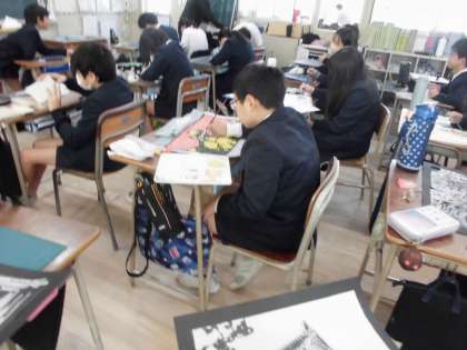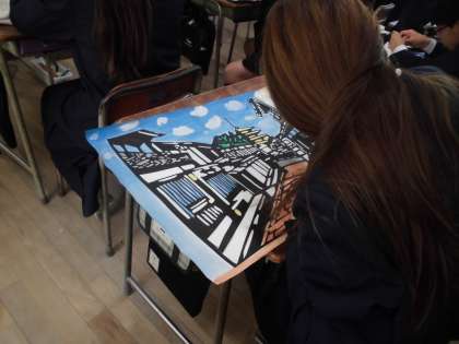 6年生の切りえの製作の様子です。切りえのカッターで切る作業が終わった児童から今度は着色に取り掛かってます。きれいな作品に仕上がってい行っています。作品展が楽しみです。