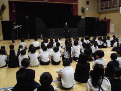 全学年で、劇団京芸さんによる「火曜日のごちそうはひきがえる」という人形劇を鑑賞しました。子どもたちは、近くで大きな人形が様々に動く様子をみて、とても喜びました。