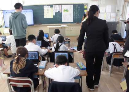 1年生では国語で「はっけんしたよ」の単元で研究授業を行いました。瓜破北幼稚園に生き物探しに行き、学習者用端末で撮影してきた動植物を詳しく観察しながら、発見メモを作る授業でした。色・形などをしっかり観察したり、手ざわりなどを思い出して書くことgできました。