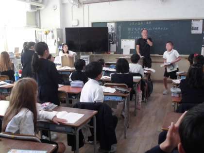 4年生は理科で「空気の温度と体積」の学習をしています。空気は温められると体積が変わるのか、予想をして発表しています。