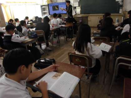 4年生は国語で「ごんぎつね」の学習がはじまりました。場面分けを確認して、音読を聞いているところです。