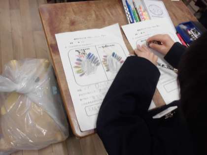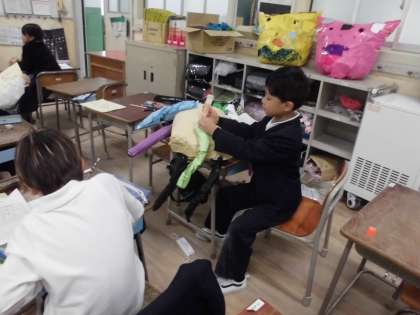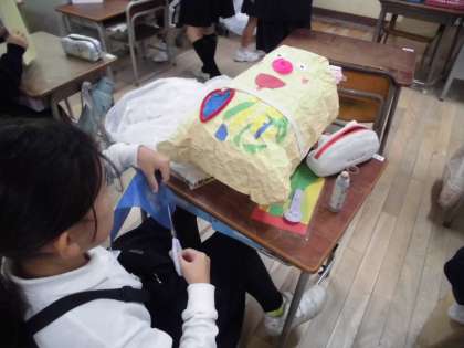 2年生は図工で「くしゃくしゃぎゅ」の制作を続けています。ずいぶんと仕上がっています。一つ一つに生き物の説明の看板も作っています。
