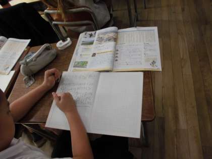 4年生は社会科で大和川の付け替えについて学習しています。人々の願いをノートにまとめています。当時の人々の気持ちになって、付け替えを願う心をしっかりとまとめていました。
