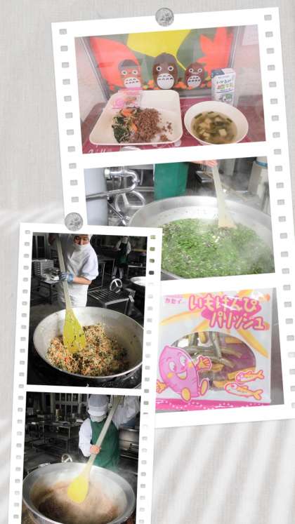 献立は、ビビンバ・わかめスープ・いもけんぴフィッシュ・ごはん・牛乳でした。