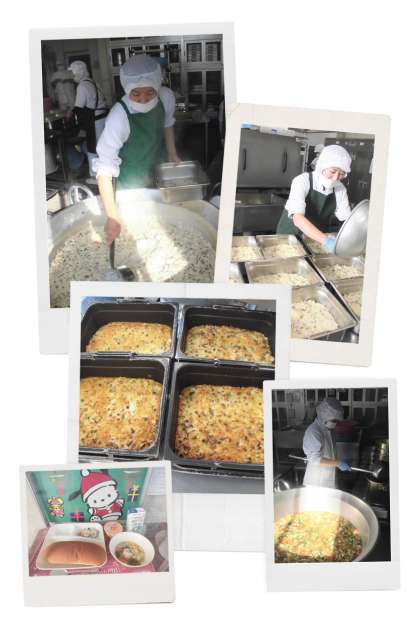 献立は、きのこのドリア・鶏肉と野菜のスープ煮・みかんゼリー・黒糖パン・牛乳でした。