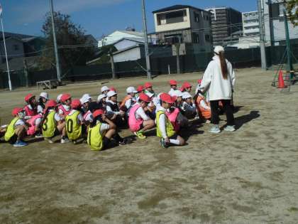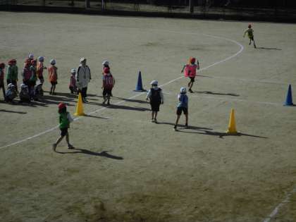 2年生は体育で「リレー」を学習しました。バトンの渡し方や、次の人へのバトンタッチなどいろいろな決まりを教わった後、リレーを楽しみました。みんな、白熱して競争しました。