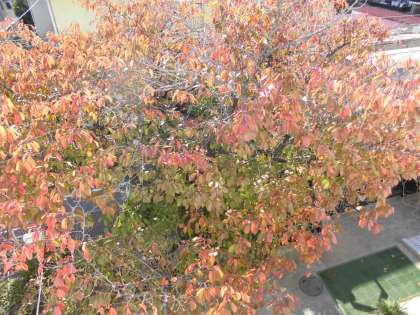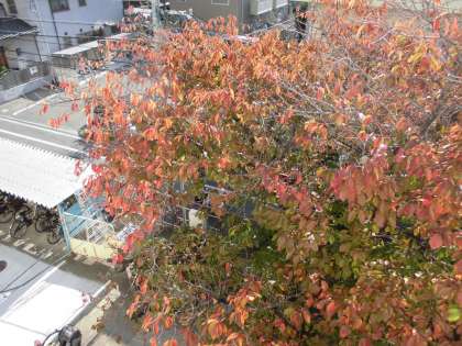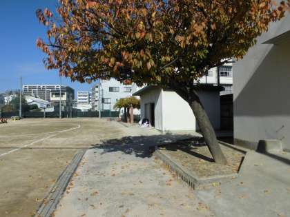 ソメイヨシノと八重桜は今、紅葉と落葉をむかえています。遅い秋を終え、冬にむかう学校の風景です。