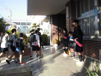 今週は生活指導強調週間で朝、あいさつ運動をしています。係の人が順番に正門にたって、大きな声で、登校の時みんなに呼び掛けてくれています。みんなもそれにこたえて、あいさつをしています。あいさつの輪が広がることを願います。