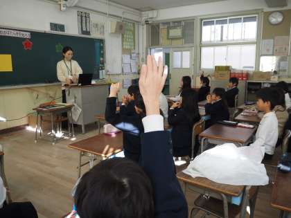 2年生は栄養職員の先生をお招きして栄養指導をうけました。黄・赤・緑の食べ物の働きを学習しました。しっかり話を聞いて発表できました。