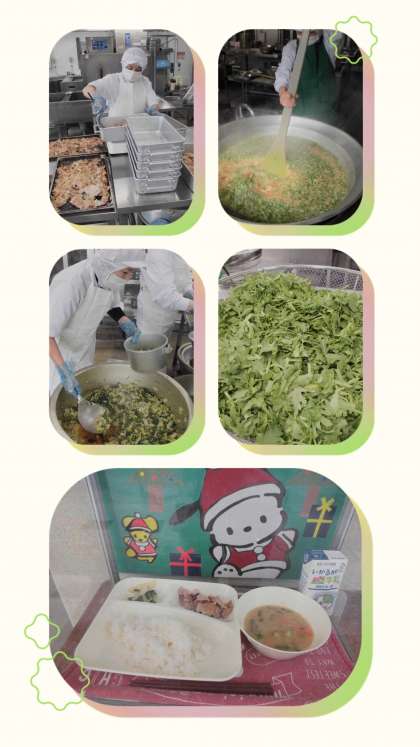 献立は、豚肉のしょうが焼き・さつまいものみそ汁・きくなとはくさいのごまあえ・ごはん・牛乳でした。