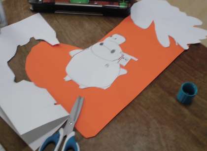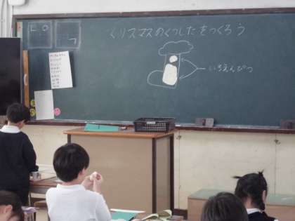 1年生は図工でクリスマスの靴下を作っています。靴下には大好きなキャラクターの絵を描いて貼りました。「ぼく、ベイマックス好きやねん」嬉しそうにキャラクターの説明をしながら、描いていました。