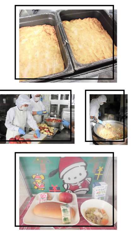 献立は、とうふローフ・カリフラワーのスープ煮・りんご・コッペパン・ソフトマーガリン・牛乳でした。