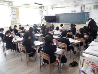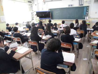 2年生は音楽で「かぼちゃ」の歌を歌っています。この曲は歌の途中にセリフが入るので、リズムが変わるところがあります。みんなで、しっかりリズム打ちを練習していました。