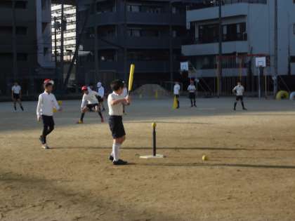 5年生は体育でTボールの学習をしています。みんなずいぶん打つ力が強くなってきています。守備もしっかりでき、楽しくプレーできていました。
