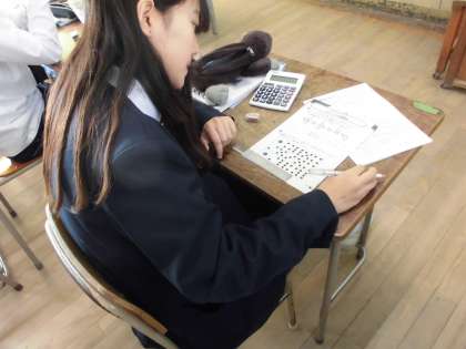 6年生は算数で「考える力をつける学習」をしていました。マッチ棒を動かして形を変える問題やさいころの展開図の問題など、真剣に考えていました。解けた人が「できた・わかった」というと「ヒントちょうだい」と友達どうして声をかけながら、楽しく学習していました。