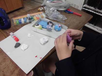 4年生は図工で紙粘土を使って、自分ボックスに入れたい好きなものを作りました。小さいマクドナルドのポテトを作ったり、ネットで調べて作りたかった作品をじっくり見ながら作ったりしていました。完成度が高い作品がたくさんあります。