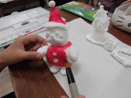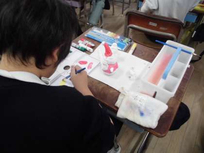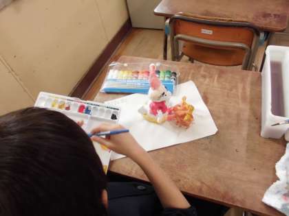 2年生も図工で紙粘土を作って作品作りをしています。2年生はサンタクロースを作りました。色のつけかたも丁寧に塗りました。サンタだけでなくトナカイも作っている子どもたちもいました。