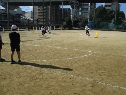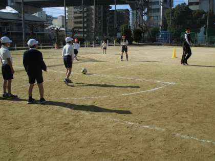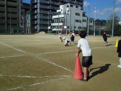 3年生は運動場でキックベースボールの学習を継続しています。チーム力がついてきています。