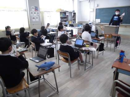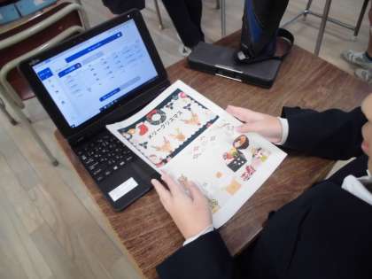 3年生はクリスマスカードを学習者用端末で作りました。素敵なカードが出来上がりました。
