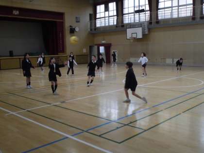 3年生は体育館でお楽しみ会のボールゲームをやっています。こちらも楽しそうです。