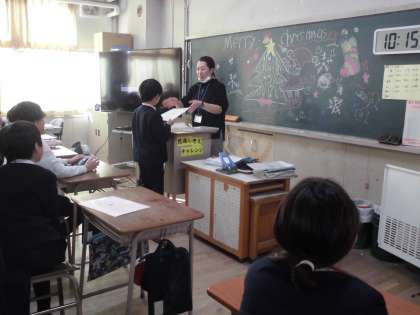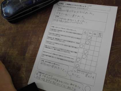 2学期の終業式を迎えました。子どもたちは各クラスで通知表をもらいました。先生から2学期がんばったことを話してもらって通知表を手にすると、一喜一憂していました。順番にもらうので、待っている間は2学期のふりかえりを書きました。