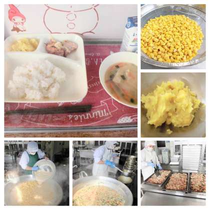 献立は、鶏肉の塩こうじ焼き・かす汁・くりきんとん・ごはん・牛乳でした。