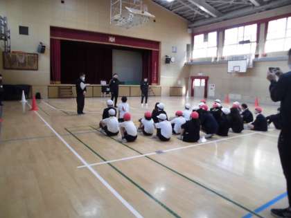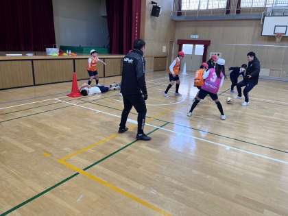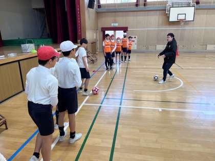 6年生は体育でフットサルのトップアスリート出前授業を行いました。楽しく活動でき、子ども達の感想では「ボールを蹴る運動は苦手だったけれど、今日は楽しかった。」「アスリートのみなさんと自分たちで対決するゲームが面白かった。」などが見られました。ご指導ありがとうございました.