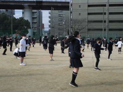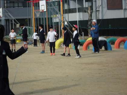 業間なわとびが始まりました。運動場で20分休みにしっかり練習しています。