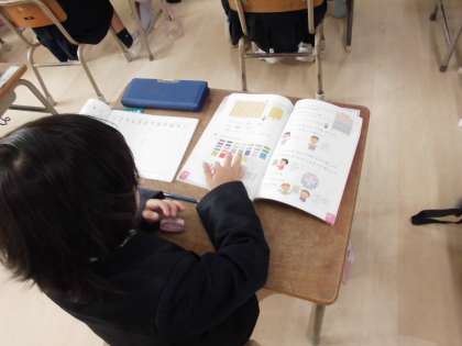 1年生は算数で「大きい数を数えよう」の学習をしています。1年生は、1から始まった数字の学習もついに100という大きい数を学習するようになりました。