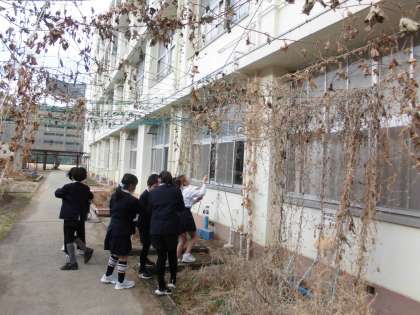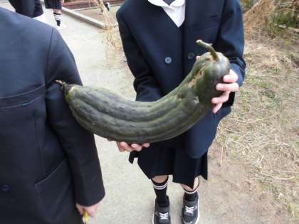 4年生は理科で大きくなったヘチマとひょうたんの収穫をしました。今年度はたくさんのヘチマやひょうたんが実りました。