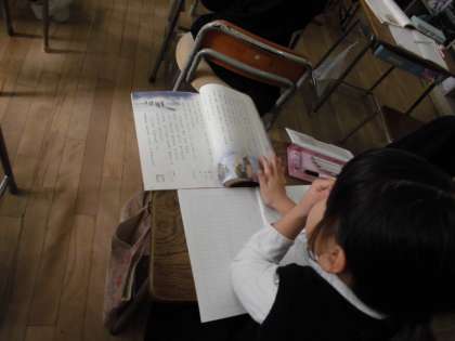2年生は国語で「かさこじぞう」の学習の終盤を迎えています。お話のはじめと終わりを読み比べて変わったところ、変わらないところを考えました。