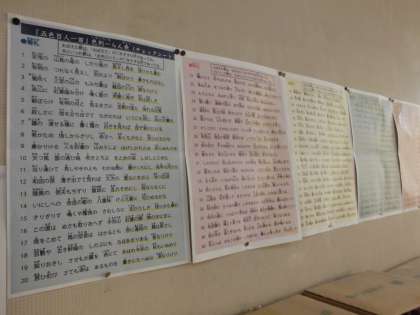 4年生は今、百人一首を覚えています。100人÷5で25人ずつ5色に分けて覚えています。