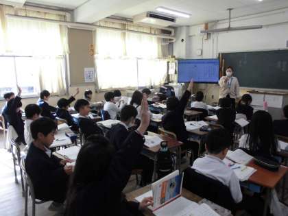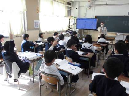 2年生は国語で「あなのやくわり」について学習しています。段落分けをして、それぞれの段落でどんなことが書かれているかを学習していました。