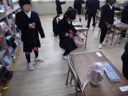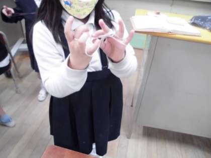 1年生は生活科で昔遊びをしています。けん玉やお手玉、あやとりなど昔の遊びを楽しんでいます。「上手にできたよ。」と、とてもうれしそうに披露しています。