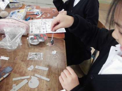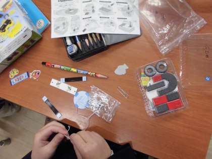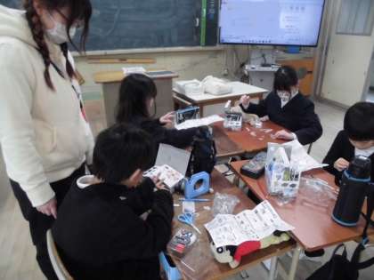 3年生は理科で磁石の学習をしています。磁石の力で魚釣りゲームやちょうちょを飛ばすなど、実験器具を使って製作しています。