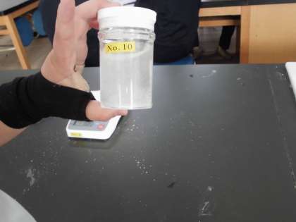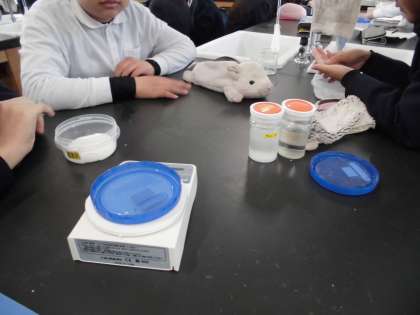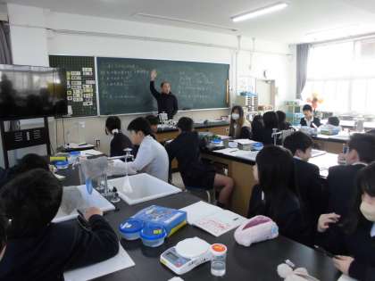 5年生は理科で「水に溶けるものの量」について学習しました。食塩を入れた容器とミョウバンを入れた容器それぞれの溶け方について観察しました。「先生、とけへん。」と言いながら、しっかり振ってとける量を測定しました。