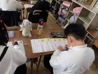 1年生は国語で漢字の学習をしています。丁寧に、真剣に漢字の学習に取り組んでいいるところです。