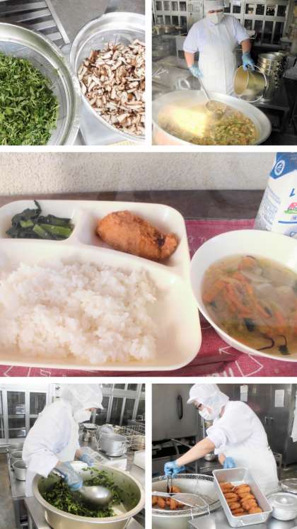 献立は、たらフライ・うすくず汁・こまつなのごまあえ・ごはん・牛乳でした。
