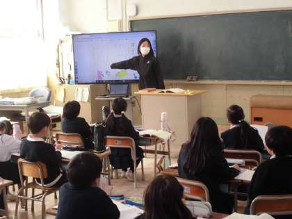 1年生は国語で「言葉をつなげて文を作ろう」の学習をしています。「小さい」などの形容詞、「さかな」などの名詞、「こそこそ」などの副詞、「たべる」などの動詞の言葉が、教科書にいくつか紹介されていて、それらの言葉を組み合わせて文を発表します。面白い文章ができあがるとみんなで、笑って楽しみました。