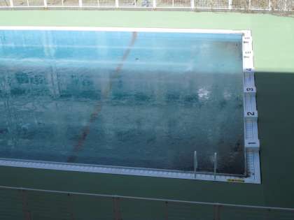 プールの水が前よりも広い範囲で氷っています。最近の冷え込みが厳しいことがわかります。