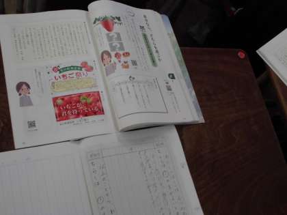 5年生は国語科で「自分ならどちらを選ぶか」を学習しています。いちご祭りのチラシについてどちらを選ぶか理由をノートに書きだしています。選択する、根拠となる理由(複数)をいう、考えをまとめるなど、筋道立てて自分の考えを整理する学習です。ノートにしっかりと書けいます。