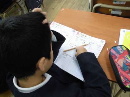 4年生は算数で小数のわり算の学習をしています。割られる数に小数点があるとなかなか難しいようです。