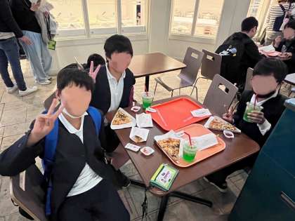 ミルクーポンで好きなお昼ご飯を食べました。それぞれの体験が終わるとキッゾがもらえて喜びました。