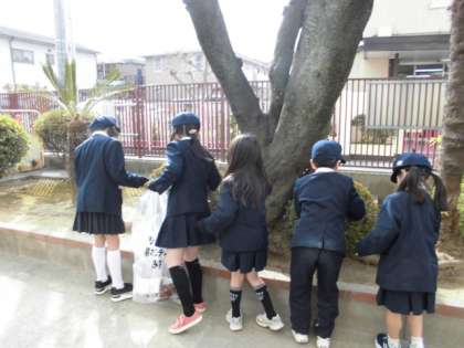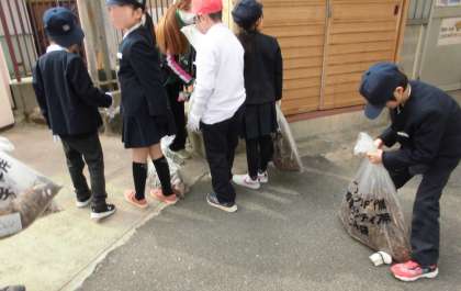2年生は学習園周辺や正門あたりから給食室までの清掃をしました。こちらも、落ち葉や枯草を拾いました。