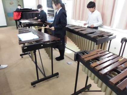 5年生は音楽室で「男の勲章」の器楽演奏を練習しています。ピアノ、オルガン、大太鼓、小太鼓、木琴、鉄琴などの楽器を一生懸命練習しています。本番が楽しみです。